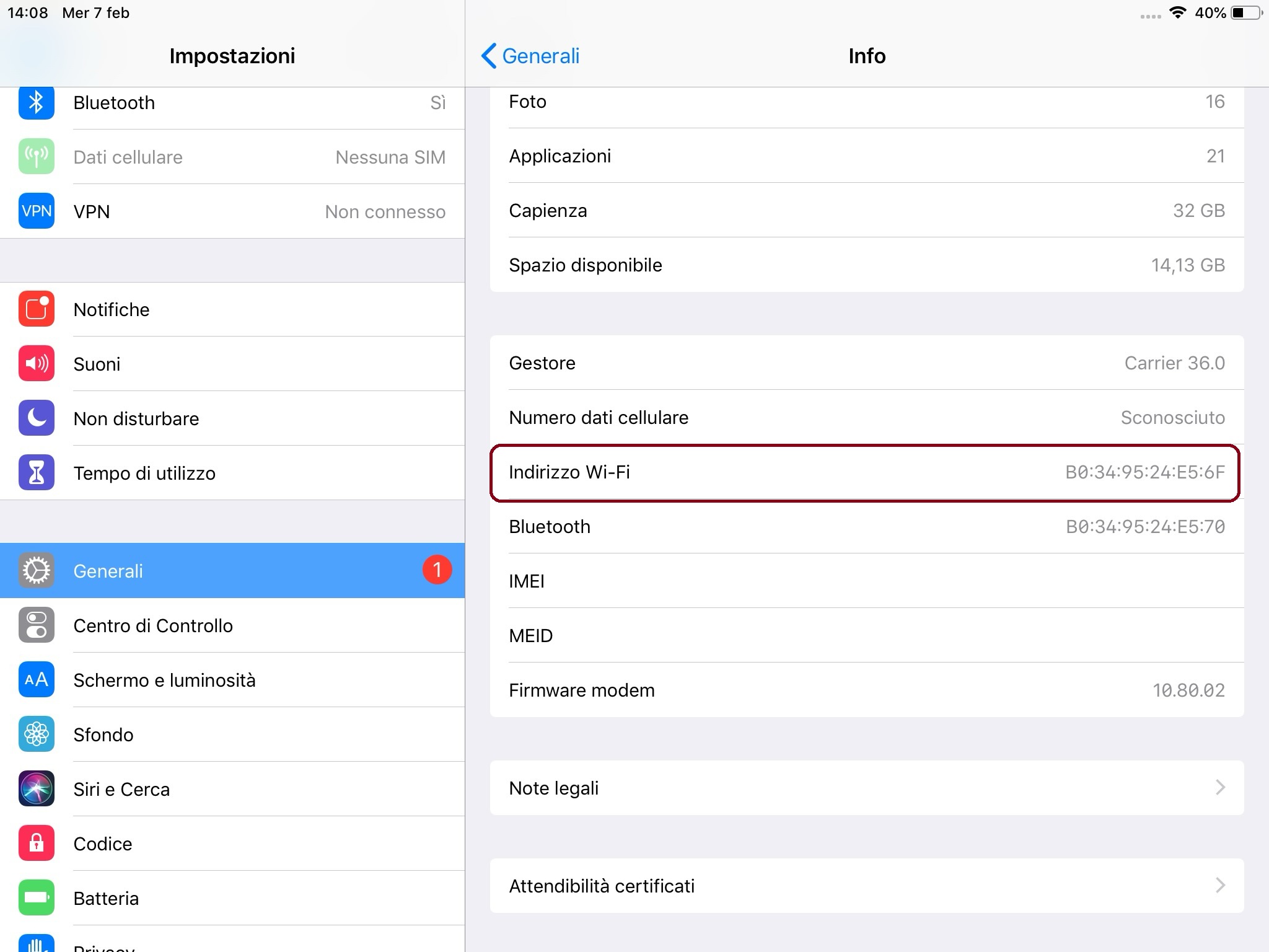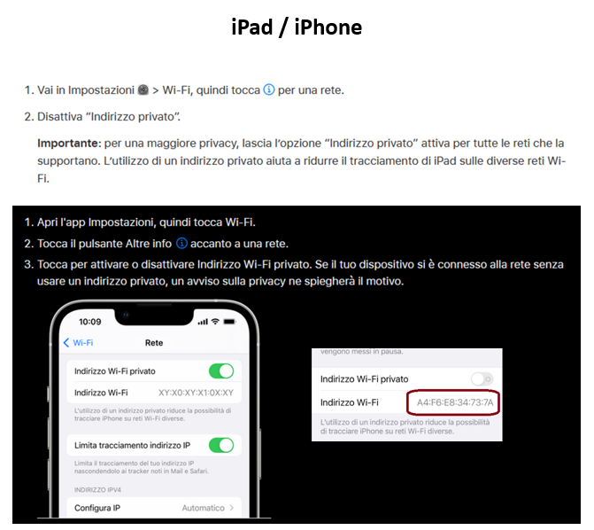 A partire da iOS 14 e iPadOS 14, il dispositivo ottimizza la privacy utilizzando un indirizzo Mac diverso per ciascuna rete Wi-Fi